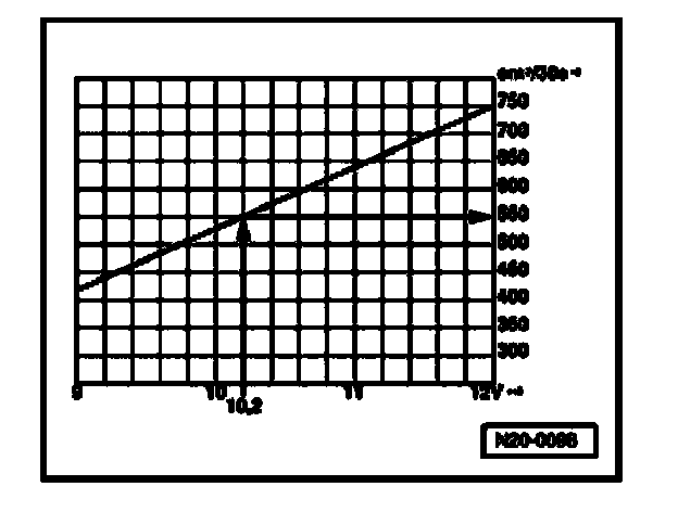 Example: During the test, a voltage of 12.2 volts is measured at the battery. As the voltage at the pump is approx. 2 volts less than the battery voltage then this will equate to a minimum delivery of 550 cubic cm/30 s.