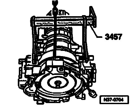 - Install transporting device 3457 to mountings on transmission housing and secure in place.