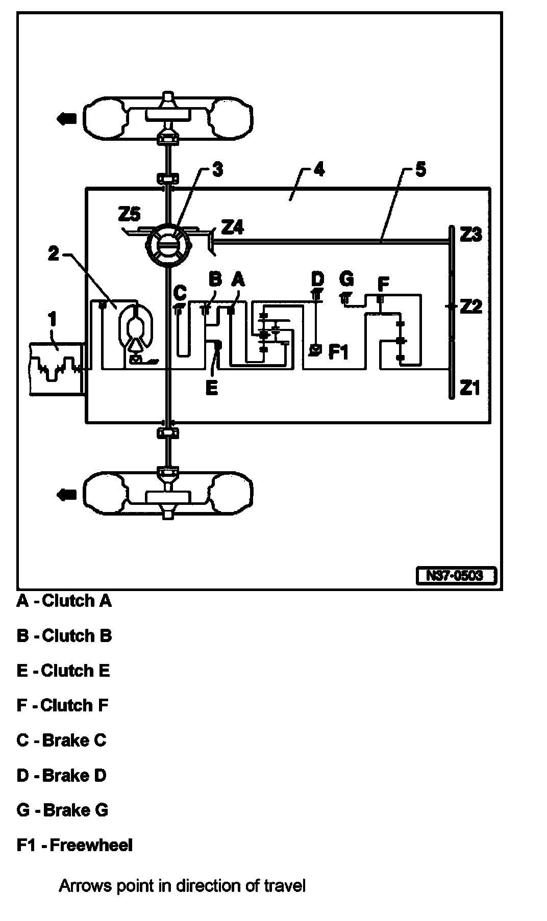 Z4, Z5 = Crown wheel and pinion (final drive); ratios