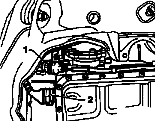 - Install right bonded rubber mount/protective plate -1- to transmission support.