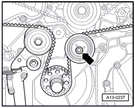 - The toothed belt tensioner is oil dampened. Therefore it can only be compressed slowly.
