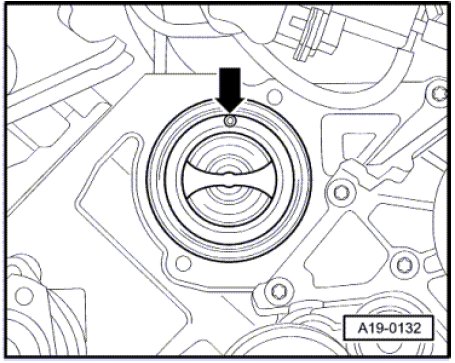 - Install the coolant thermostat with the breather valve - arrow - facing upward.