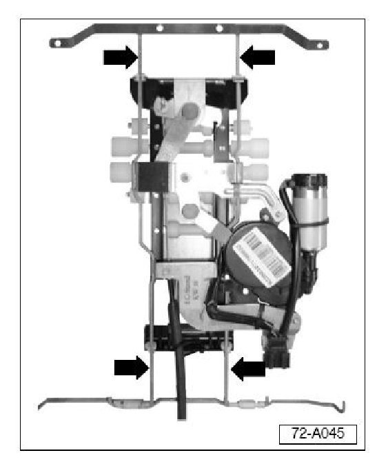 - Apply special grease (Part No. G 000 450 02) along length of support track - arrows- (see Illust. 72-A045 for view of lumbar support).