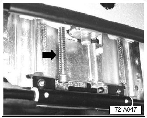 - Apply special grease (Part No: G 000 450 02) along length of support track - arrows- (see Illust. 72 A050 below for clarity).