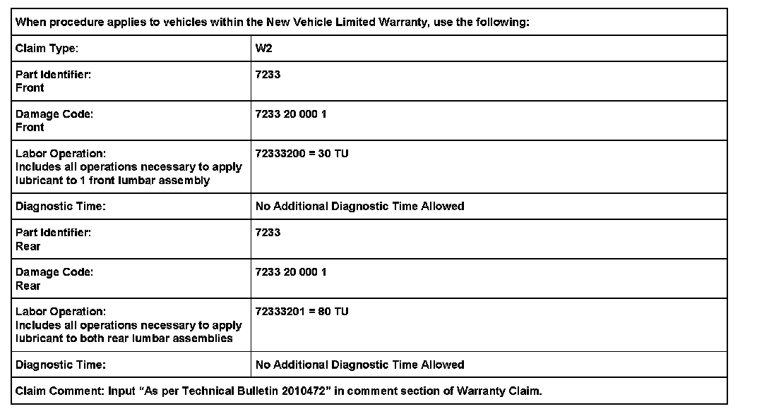 - Operate each seat lumbar support to full travel in each direction to ensure noise has been eliminated.