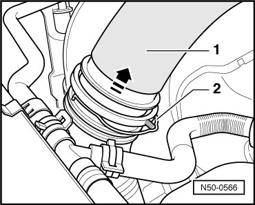 - When resetting the lock carrier, make sure the intake pipes - 1 - are properly seated on the air filters - 2 - near the wheel housing - arrow -.