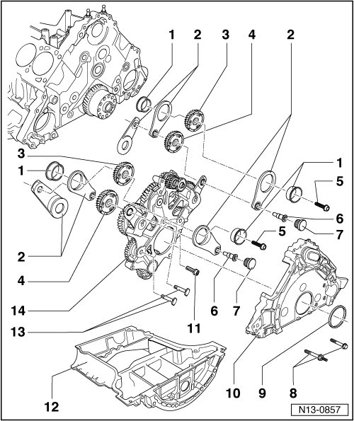 • Removing and installing, refer to --> [ Camshaft Compensation Wheel and Input Gear ] Service and Repair.