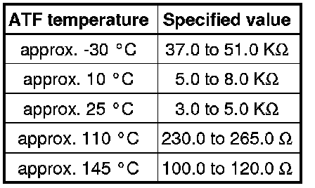 - Measure resistance of Transmission Fluid Temperature Sensor (G93) between terminals 1 + 2 at connector to sensor: