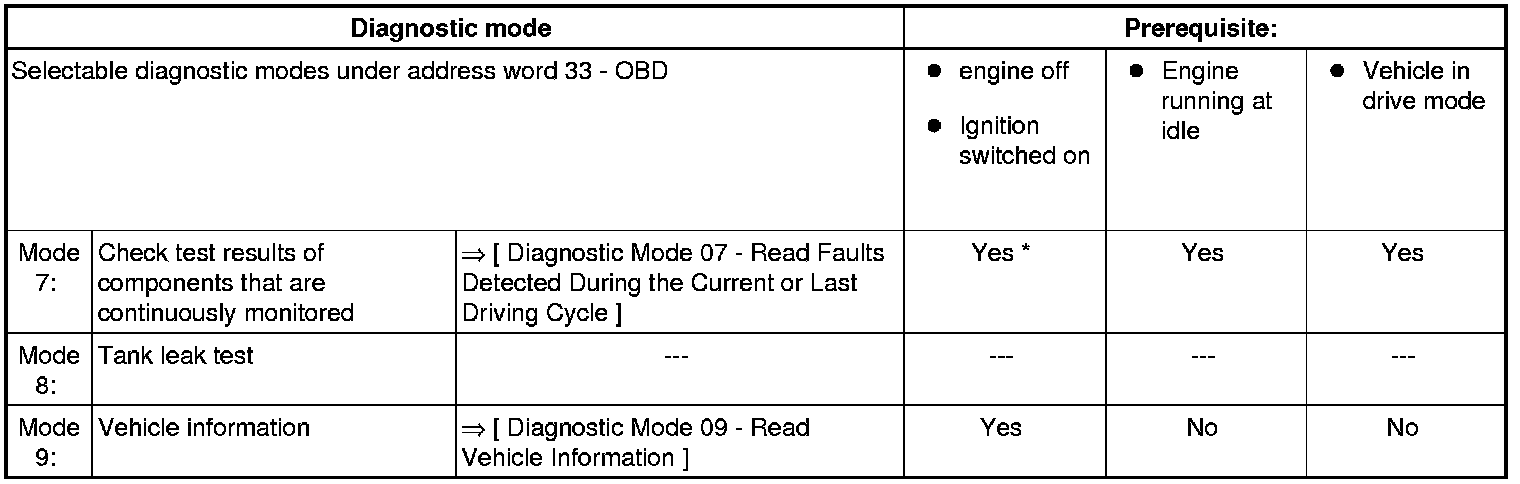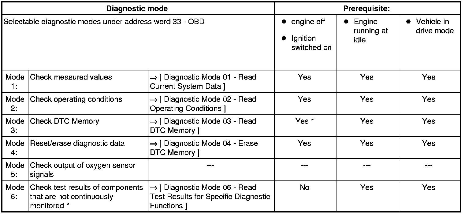 • The conditions required for selecting the desired diagnostic mode are listed in the following table: