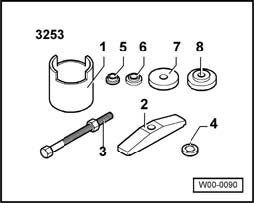 - Install seal with fitting sleeve 3378 in cylinder head cover - 1 - and pull in flush with fitting sleeve 3253/6 from assembly device 3253.