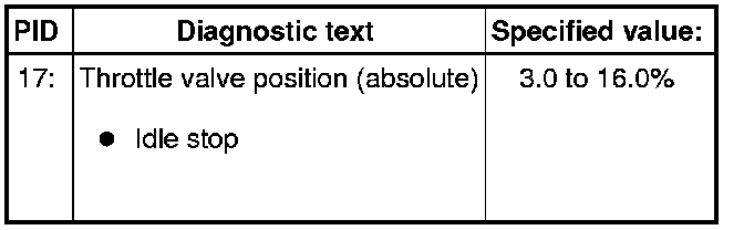 - Check specified value of throttle valve position (absolute) at idle stop: