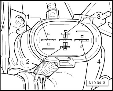 - Disconnect 4-pin connector from Coolant Fan Control (FC) Control Module (J293) - 1 -.