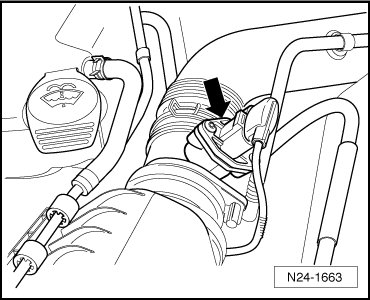 - Disconnect 5-pin connector from Mass Air Flow (MAF) Sensor (G70) with Intake Air Temperature (IAT) Sensor (G42) (arrow).