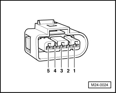 - Check voltage supply at 5-pin connector terminal 2 according to wiring diagram: