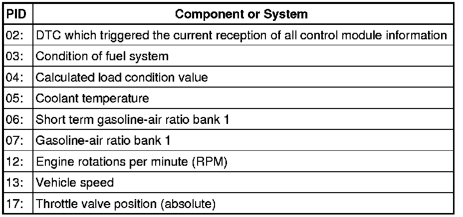 • Depending on scan tool and protocol used, the information displayed may be referred to by different names such as Test-ID (TID), Hex-ID, Component-ID (CID), On-Board Diagnostic Monitor Identifier (OBDMID), or contain no name at all and be referenced by only a number.