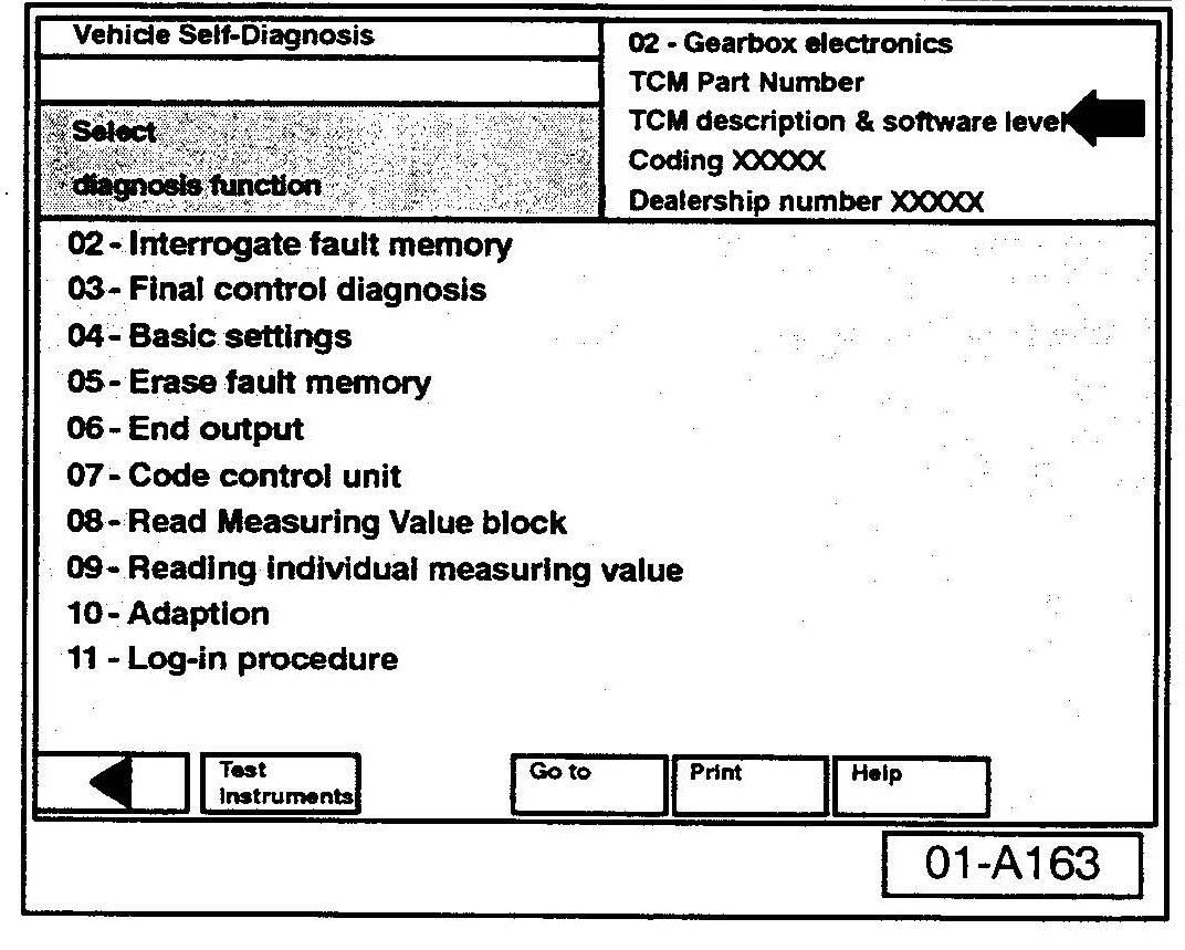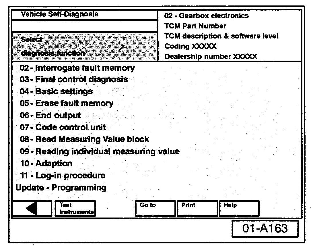- Scroll and select vehicle system "02-Gearbox electronics".