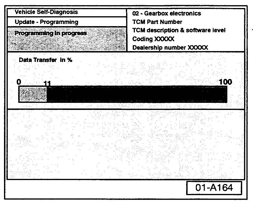Once "Update - Programming" function has been started, switching ignition OFF or disconnecting the diagnostic connector may completely destroy the TCM.
