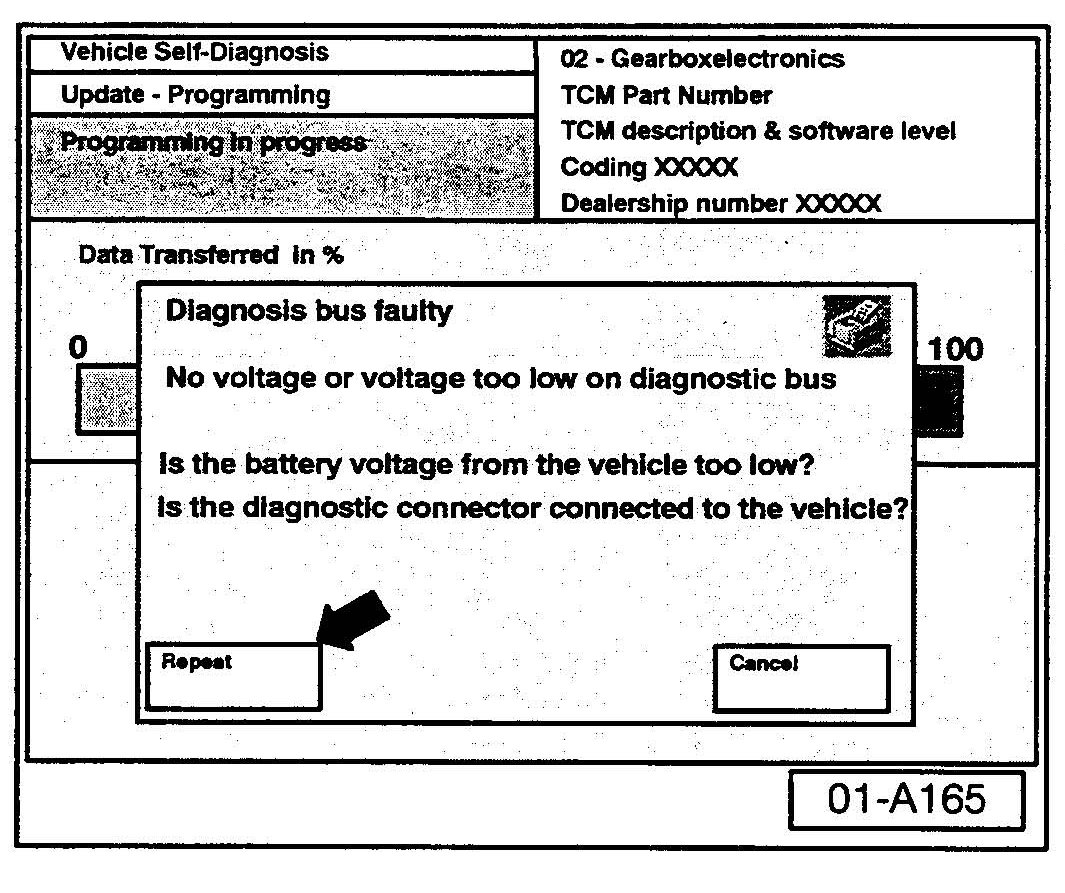 - The "Update - Programming" (flashing) process must then be started from the beginning using the "Repeat" button (arrow). DO NOT use the "Cancel" button.
