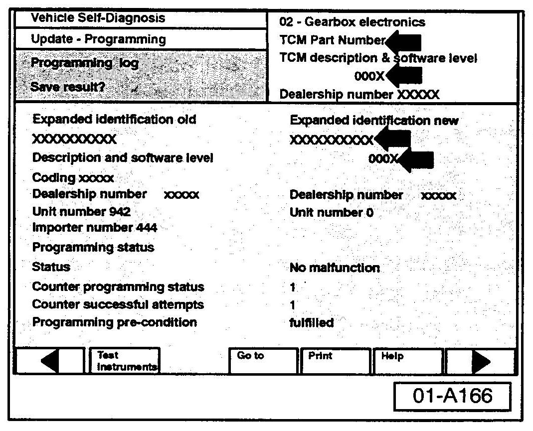^ Old TCM Part No. and software level still appear at (arrow)