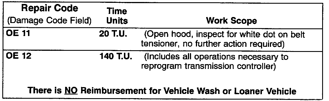 Required Vehicle Update Technical Bulletin Time Requirements/Reimbursement