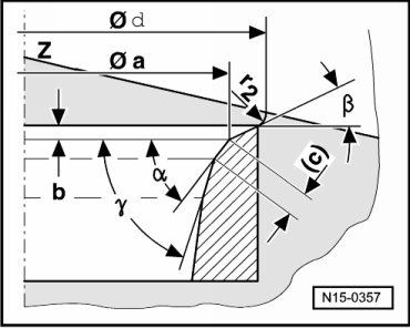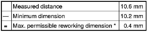 - Calculate max. permissible reworking dimension from measured distance - a - and minimum dimension.