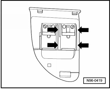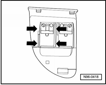 - Pull installation frame of Fuel Filler/Rear Lid Remote Unlocking Button (E463) in - direction of arrow - and remove it.