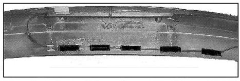 ^ Measure length of the antenna cable as shown. If measurement is not equal to the following dimensions, the wiring loom for tailgate, which includes the antenna cable, must be replaced.