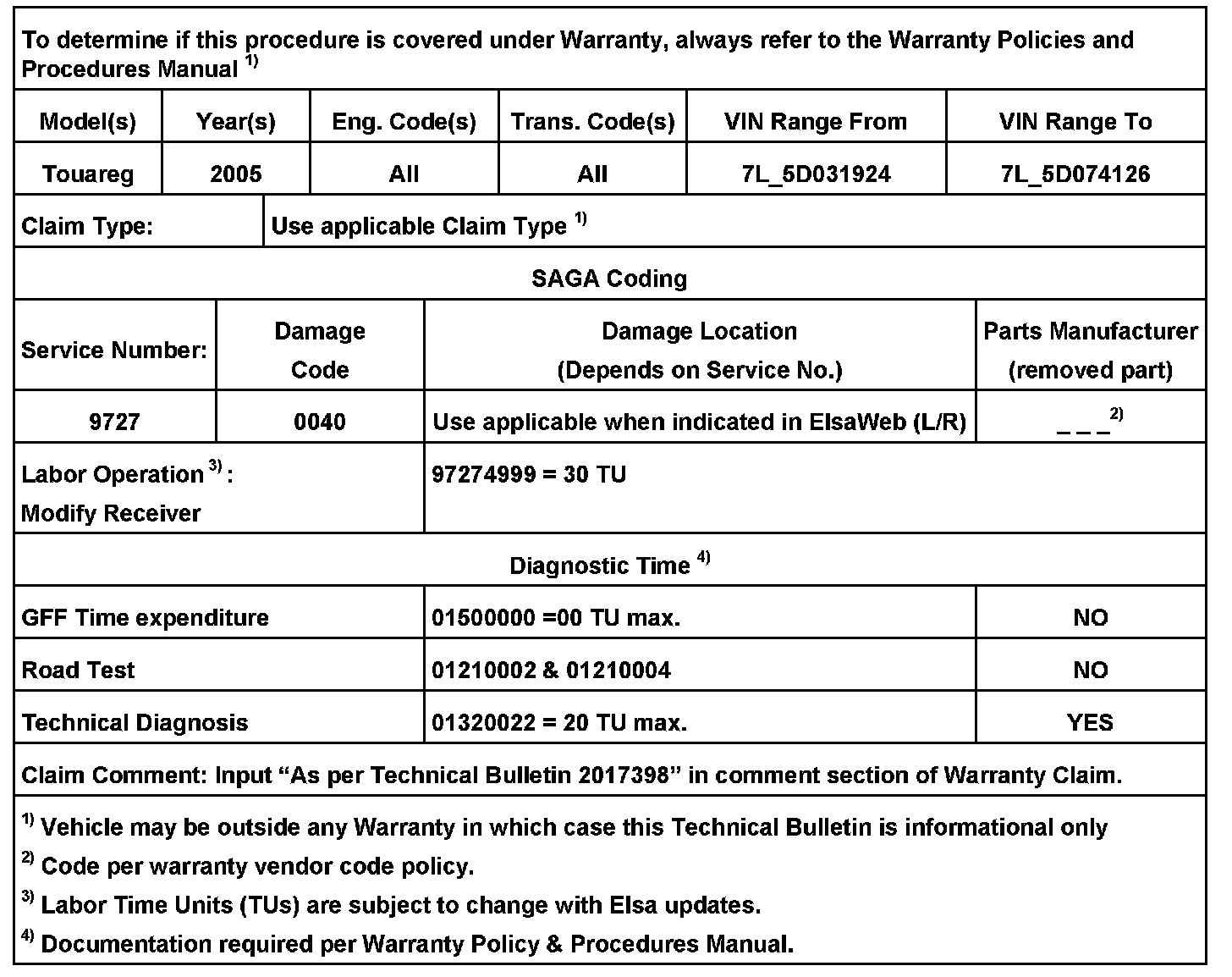 ^ If relocation of antenna in rear spoiler does not improve customer concern, call technical assistance. For technical assistance, select the "Technical Assistance" tab in ElsaWeb and follow the instructions to obtain a 6 digit pin.