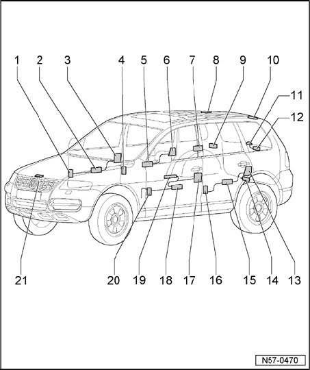 - Location: in area of rear roof crossmember, covered by roof trim.