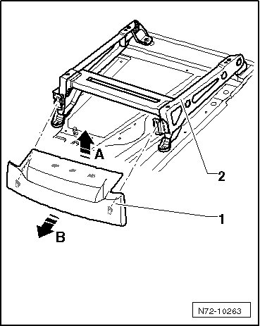 - Remove trim - 1 - in rear area upward out of mounts in seat frame - 2 - - arrow A -.