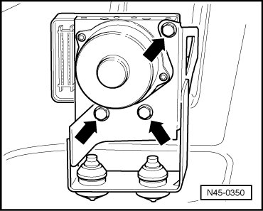 - Remove hydraulic unit bolts- arrows - from bracket.