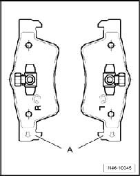 ^ In installed position, the arrow - A - on the backing plate of the brake pad points down (in rotation direction of brake disc).