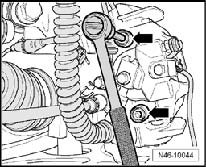 - Press retaining spring in - direction of arrow A - until it can be pressed out of bore in - direction of arrow B -.