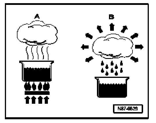 As heat spreads into cooler areas, the passenger compartment is equipped with a unit for generating low temperatures with constant evaporation of refrigerant. The heat required for this is extracted from the air flowing through the evaporator.