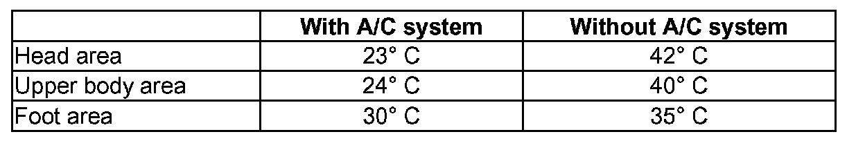 - Pleasant temperature levels (example: Mid-size car after short travelling time, ambient temperature 30 degrees C in the shade and vehicle exposed to sunlight).