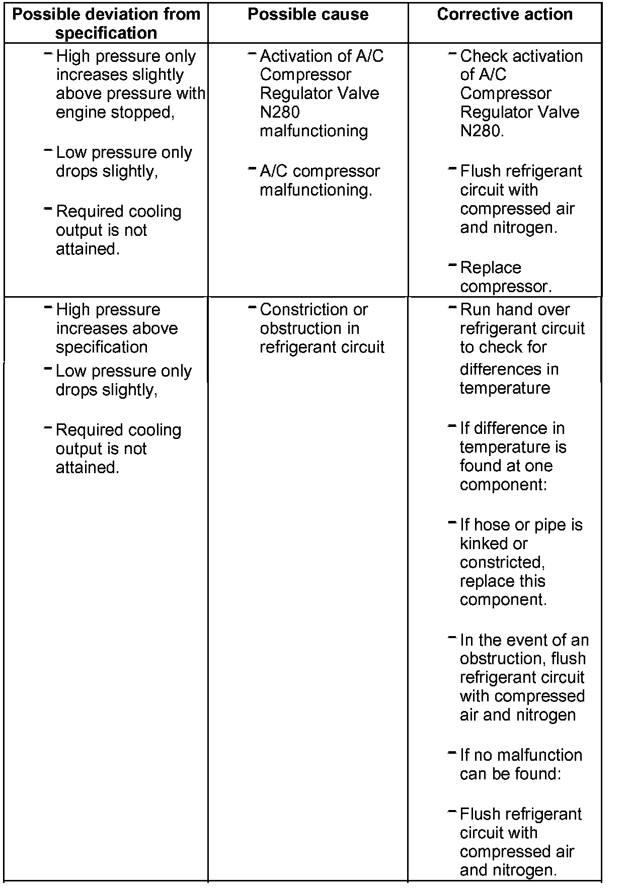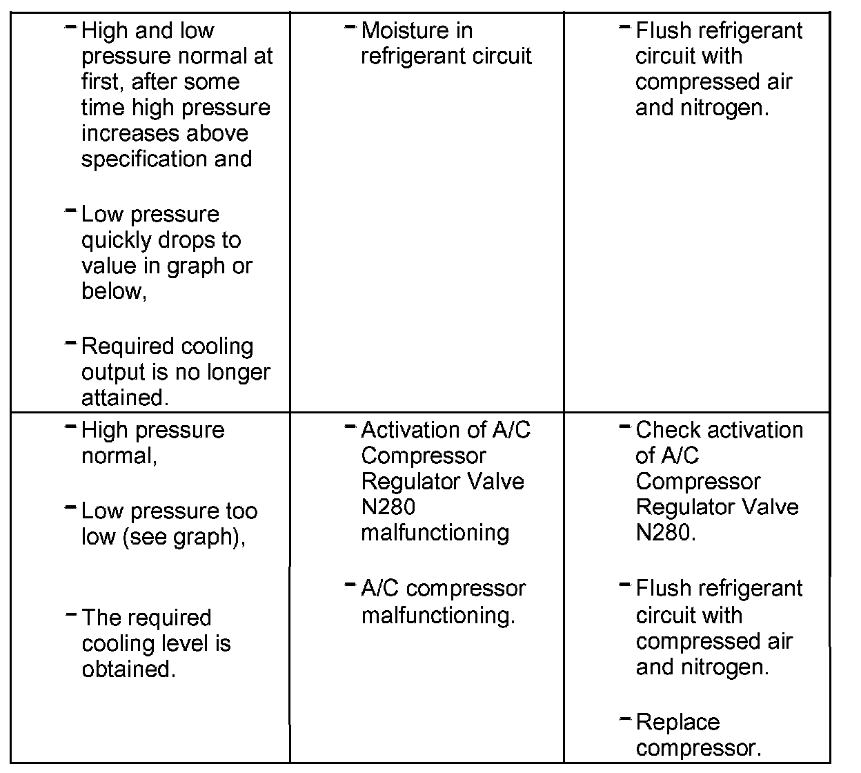 NOTE: If no malfunction is found in relation to this complaint, flush refrigerant circuit with compressed air and nitrogen.