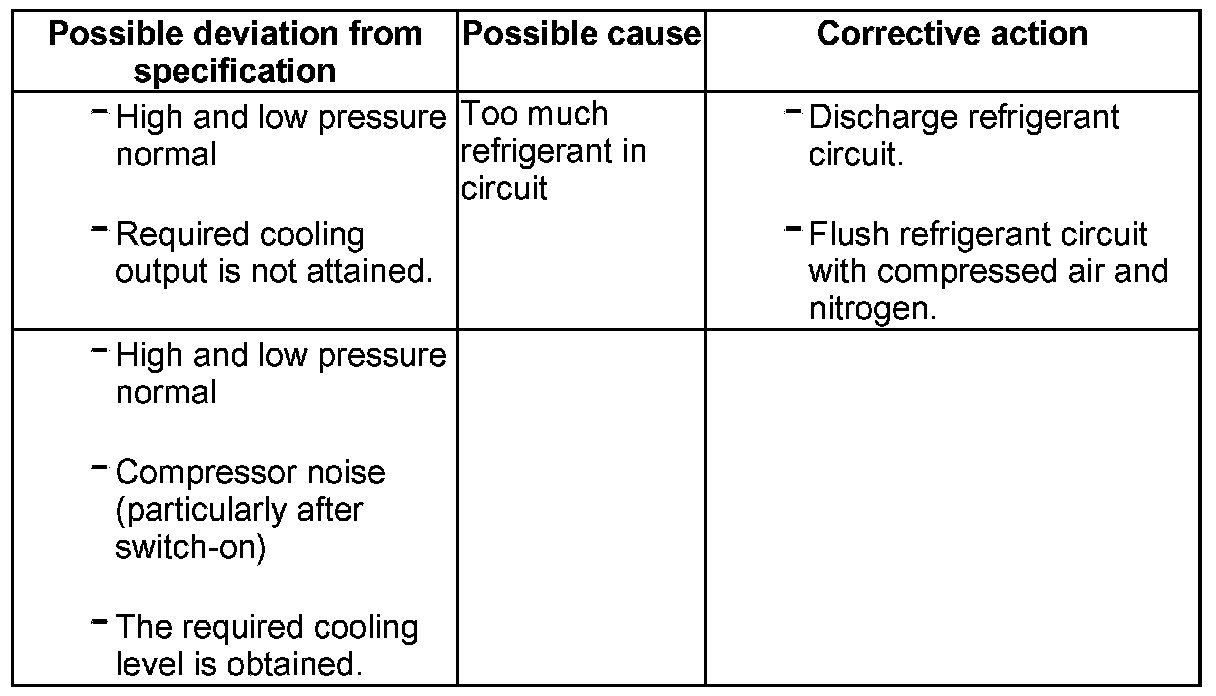 NOTE: Overfilling with refrigerant oil can occur if, for example, the compressor has been replaced without adjusting the quantity of refrigerant oil.