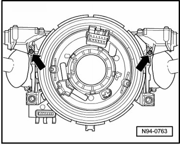 • Airbag Spiral Spring/Return Spring With Slip Ring (F138) and Steering Angle Sensor (G85) must not be twisted out of center position during removal.