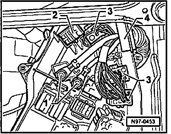 NOTE: The number of electrical connections -3- and number of threaded connections -1 - can deviate from the illustration depending on vehicle equipment.