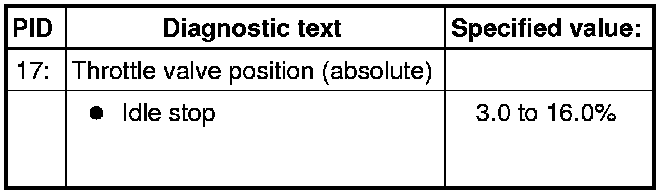 - Check specified value of throttle valve position (absolute) at idle stop: