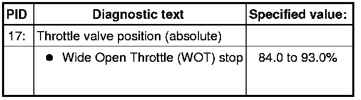 - Check specified value of throttle valve position (absolute) at Wide Open Throttle (WOT) stop: