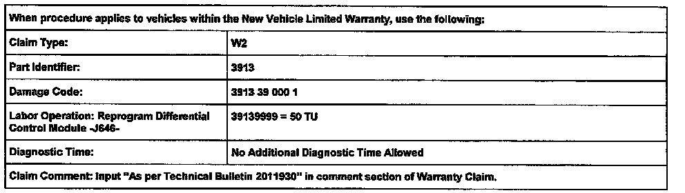 - Your Dealership should place the vehicle owner on notice in writing, that their Differential Control Module was found to have been tuned, and that any damage caused by the tuning of the Differential Control Module (including any adverse emissions consequences) will not be covered by Volkswagen of America, Inc. warranties.