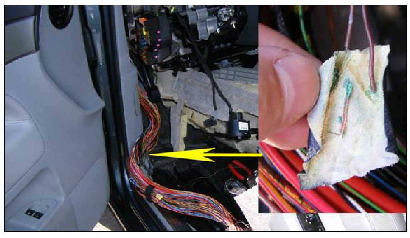 The wiring harness located on the driver s side floor pan near the A-pillar may have a corroded splice(s) connection.