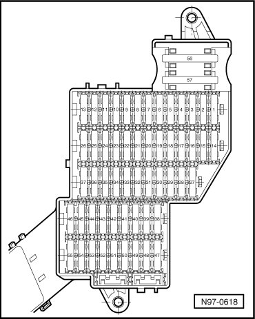 • Respective fuses of fuel injectors (Cylinder 1 Fuel Injector (N30) to Cylinder 4 Fuel Injector (N33), Cylinder 5 Fuel Injector (N83) to Cylinder 8 Fuel Injector (N86)) in fuse box (instrument panel, left) must be OK: