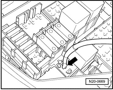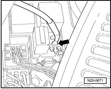 - Now connect adapter (VAG1348/3-3) of remote control to connector of Fuel Pumps (FP) Relay, left and right: