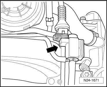 - Disconnect 2-pin connector from Secondary Air Injection (AIR) Solenoid Valve (N112) (arrow).