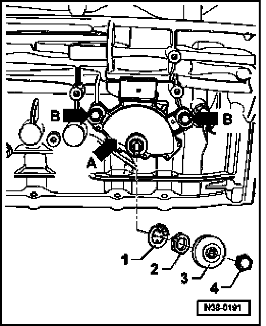 - Unbolt mounting bolts (arrows -B-) and remove Multi-Function Transmission Range (TR) Switch -F125- (arrow -A-) from shift rod.
