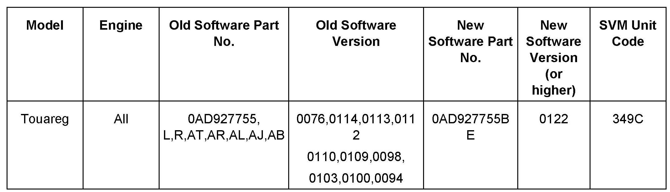 Update the Differential Control Module using the SVM Unit code as listed in the table shown.