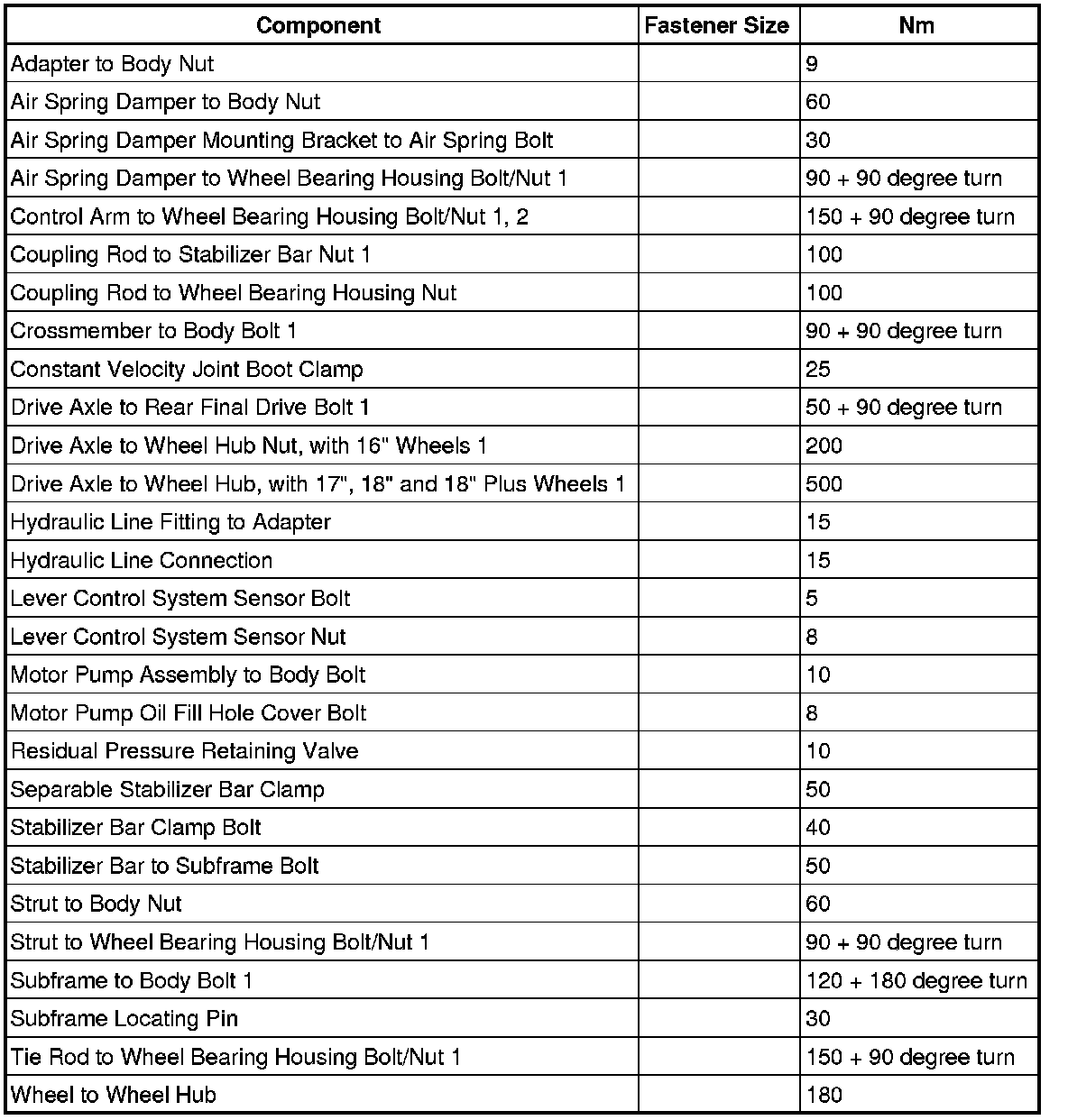 Fastener Tightening Specifications