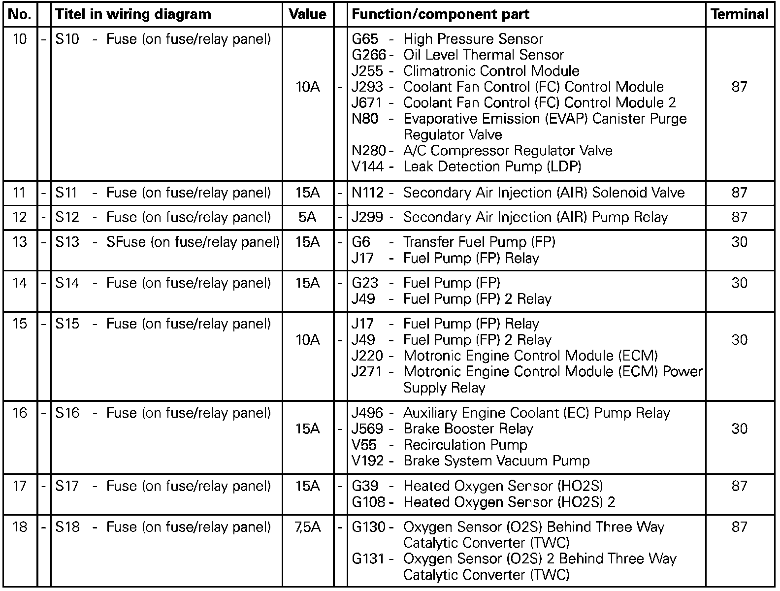 Fuses 10 To 18: